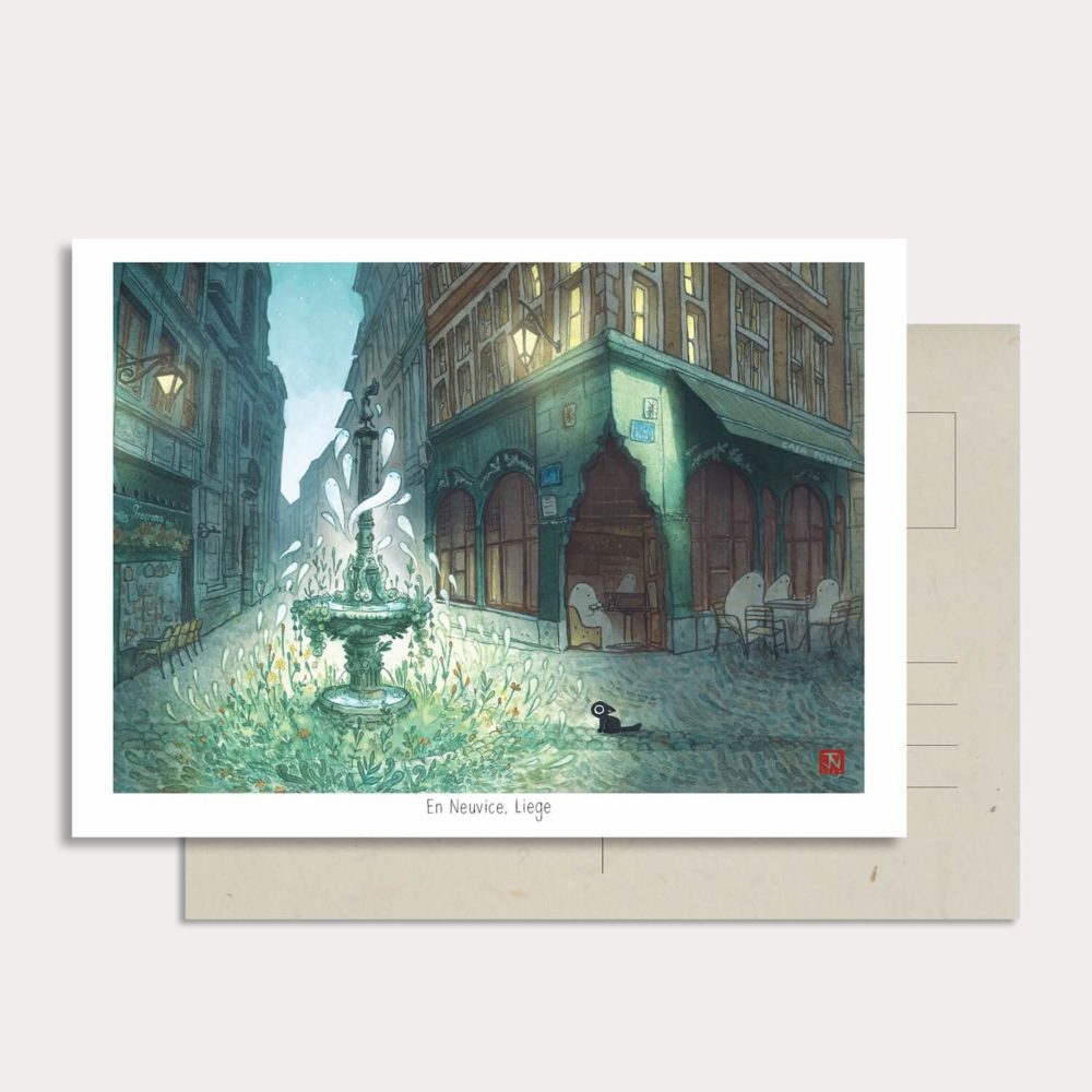 Jen Berger est une artiste illustratrice liégeoise. Elle crée des cartes postales qui illustrent des lieux célèbres qu'elle aime particulièrement de sa ville, Liège !