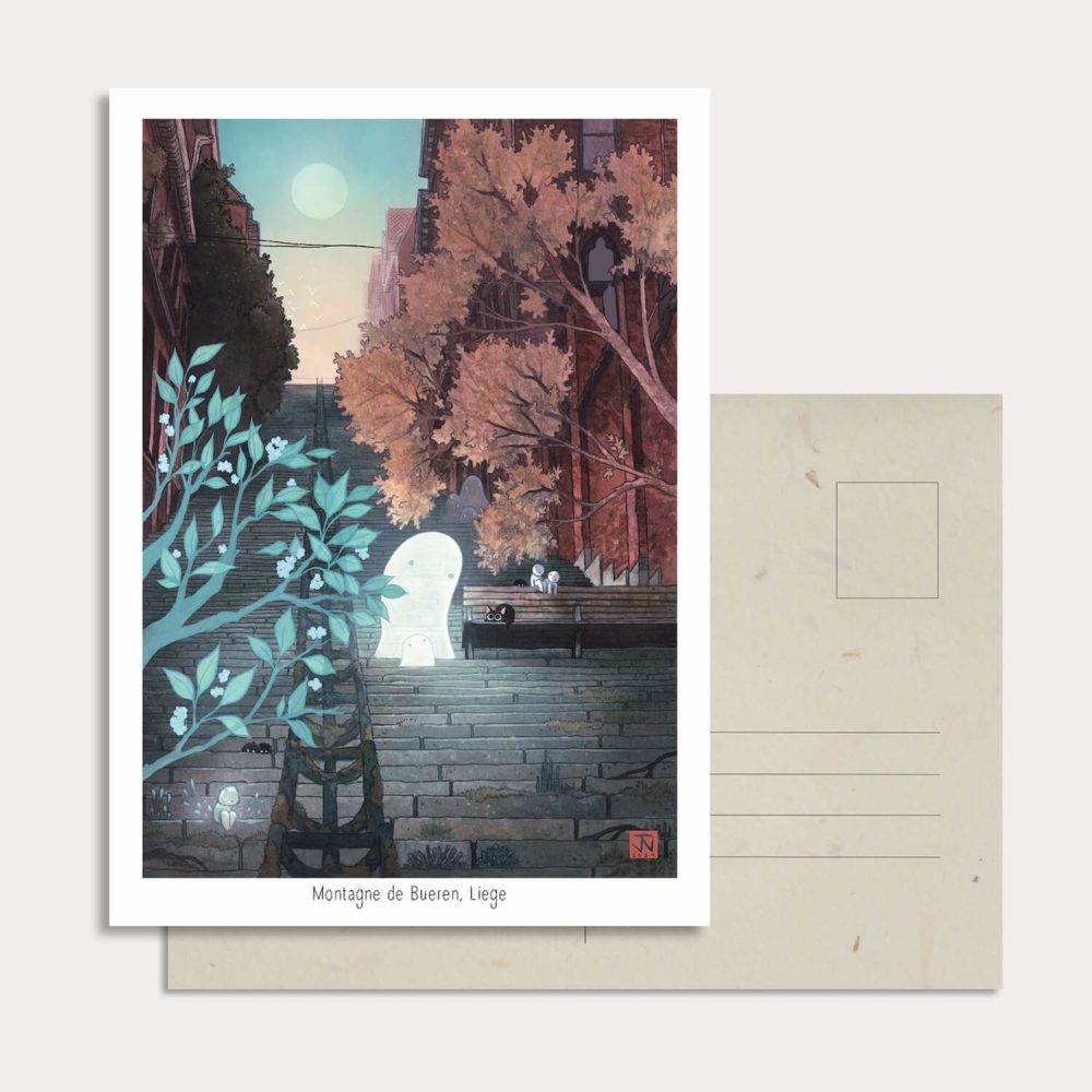 Jen Berger est une artiste illustratrice liégeoise. Elle crée des cartes postales qui illustrent des lieux célèbres qu'elle aime particulièrement de sa ville, Liège !