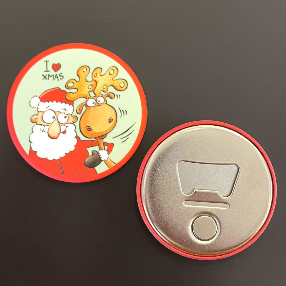 À la fois œuvres d’art miniatures et objets pratiques, ces magnets originaux, réalisés par l’artiste liégeoise Catherine Maréchal, connue pour son univers coloré, expressif et empreint d’humour, sont aussi des décapsuleurs !