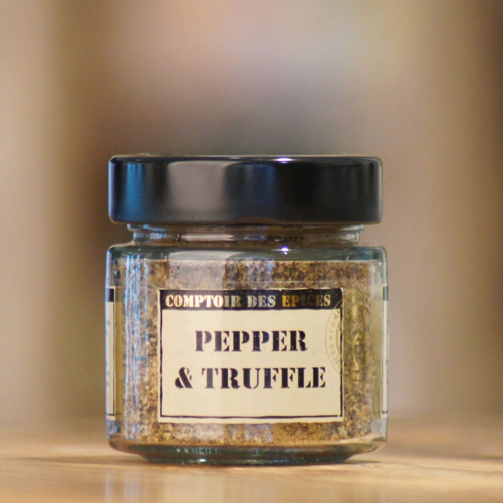 Ingrédient(s) : poivres noir et vert, poivre des côtes, coriandre, jamaïque, séchuan vert, ail, écorces de citrons, truffes blanches, arôme truffe, piment rouge.
