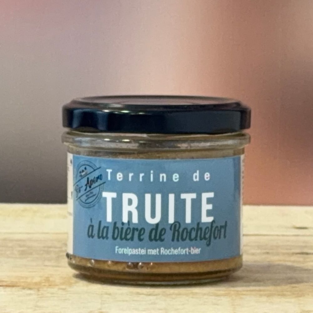 Cette terrine s’inspire des tables ardennaises : duo de truite fraîche & fumée, morceaux de jambon d’Ardenne, et liaison à la bière trappiste de Rochefort qui apporte structure maltée et longueur. Résultat : une texture soyeuse, iodée juste ce qu’il faut, et un caractère bien de chez nous sur toast ou pain de campagne.